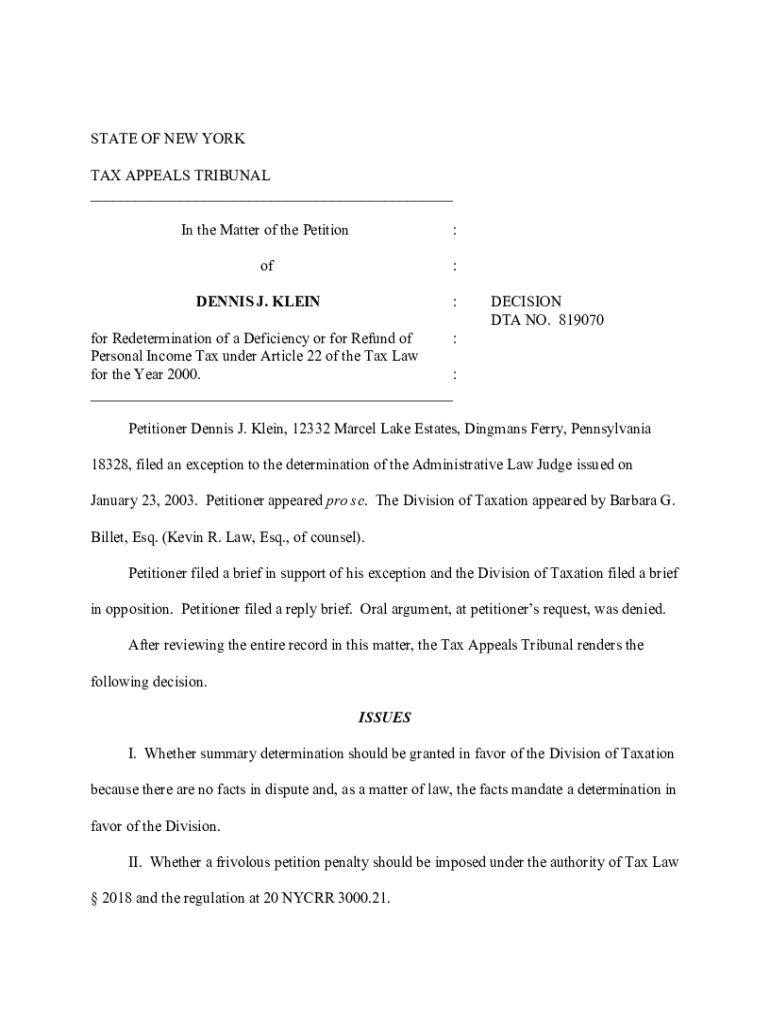 Get the free New York Tax Tribunal Denies Taxpayer's Exception to ...