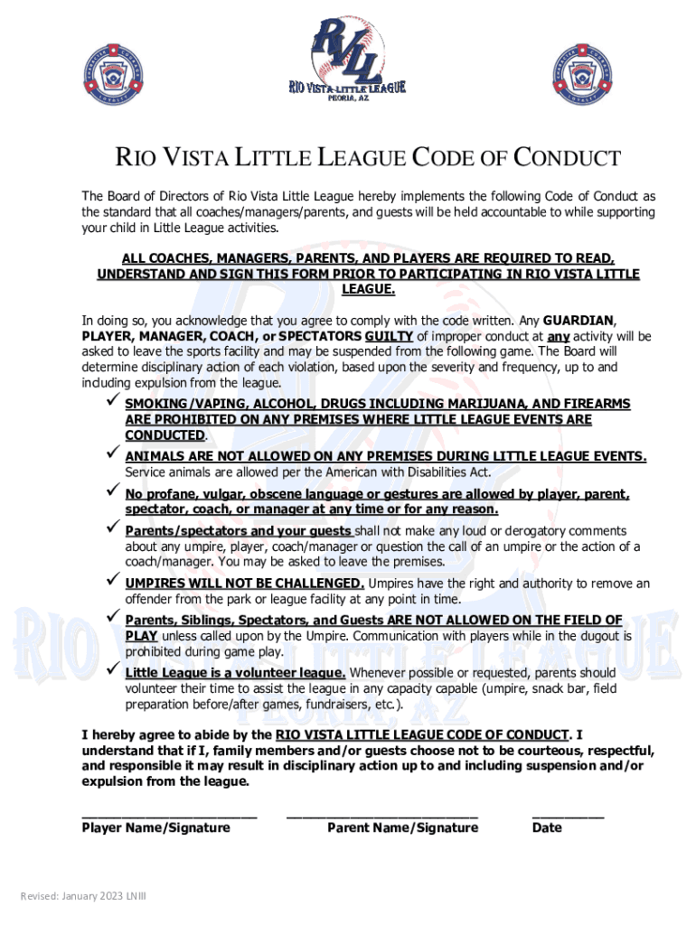 Get the free RIO VISTA LITTLE LEAGUE CODE OF CONDUCT