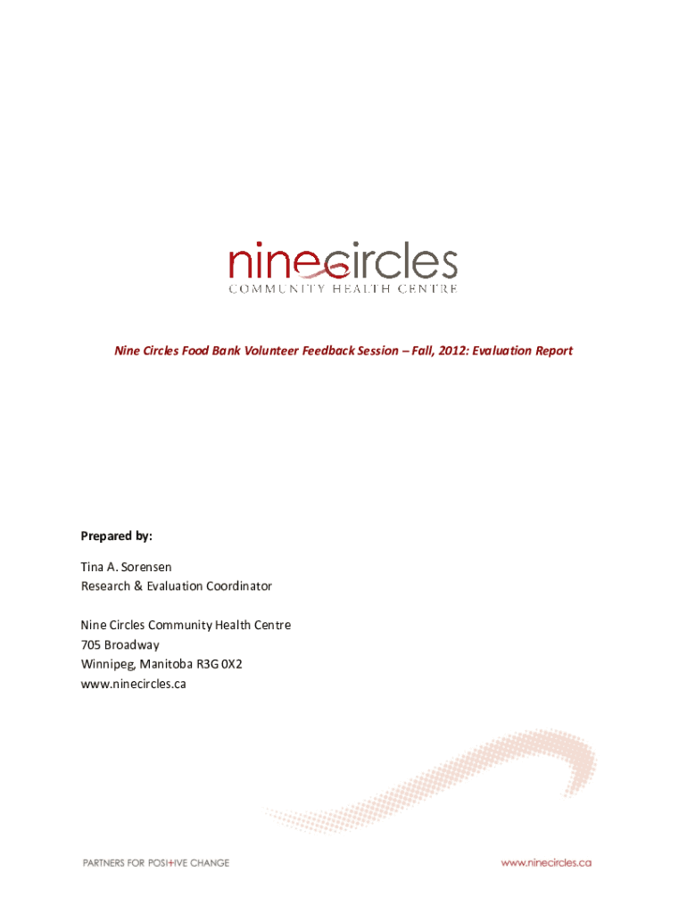 Nine Circles Food Bank Volunteer Feedback Session Fall, 2012: Evaluation ReportPrepared by: Tina A. Sorenson Research & Evaluation Coordinator Nine Circles Community Health Center 705 Broadway Winnipeg,