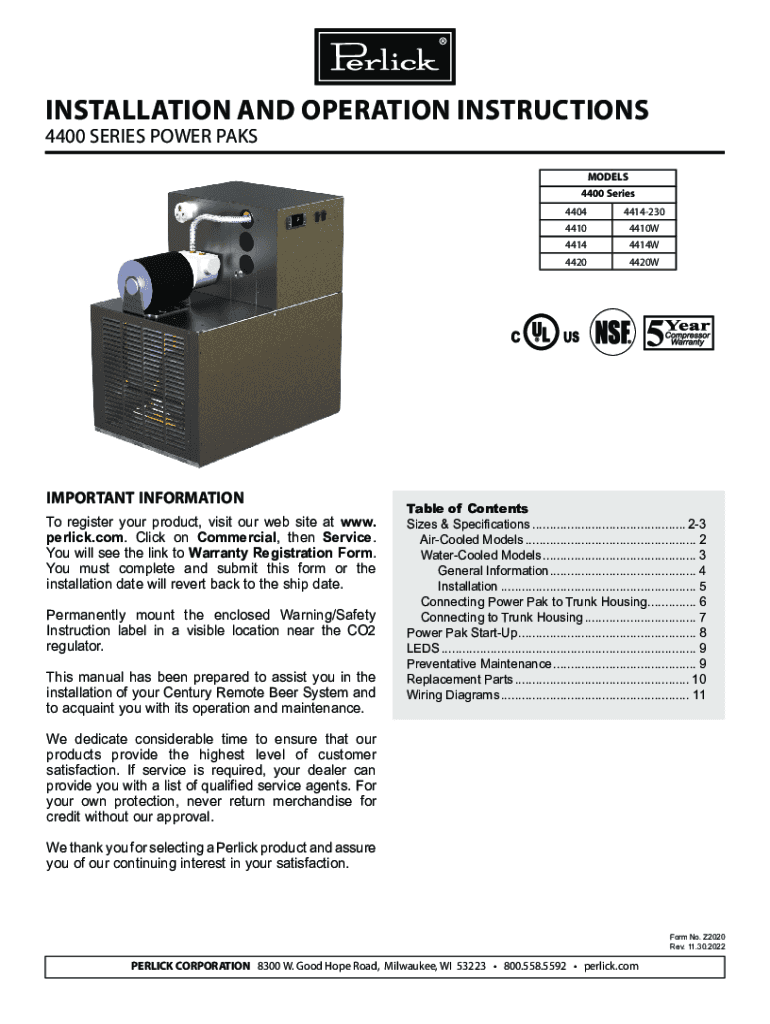 INSTALLATION AND OPERATION INSTRUCTIONS4400 SERIES POWER PASSCODES 4400 SeriesCIMPORTANT INFORMATION To register your product, visit our website at WWW. Perlick.com. Click on Commercial, then Service.
