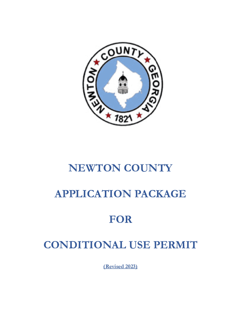 NEWTON COUNTY APPLICATION PACKAGE FOR CONDITIONAL USE PERMIT (Revised 2023)DEADLINES AND PROCEDURES1. Reapplication review is required prior to the submittal of the application. 2. The application