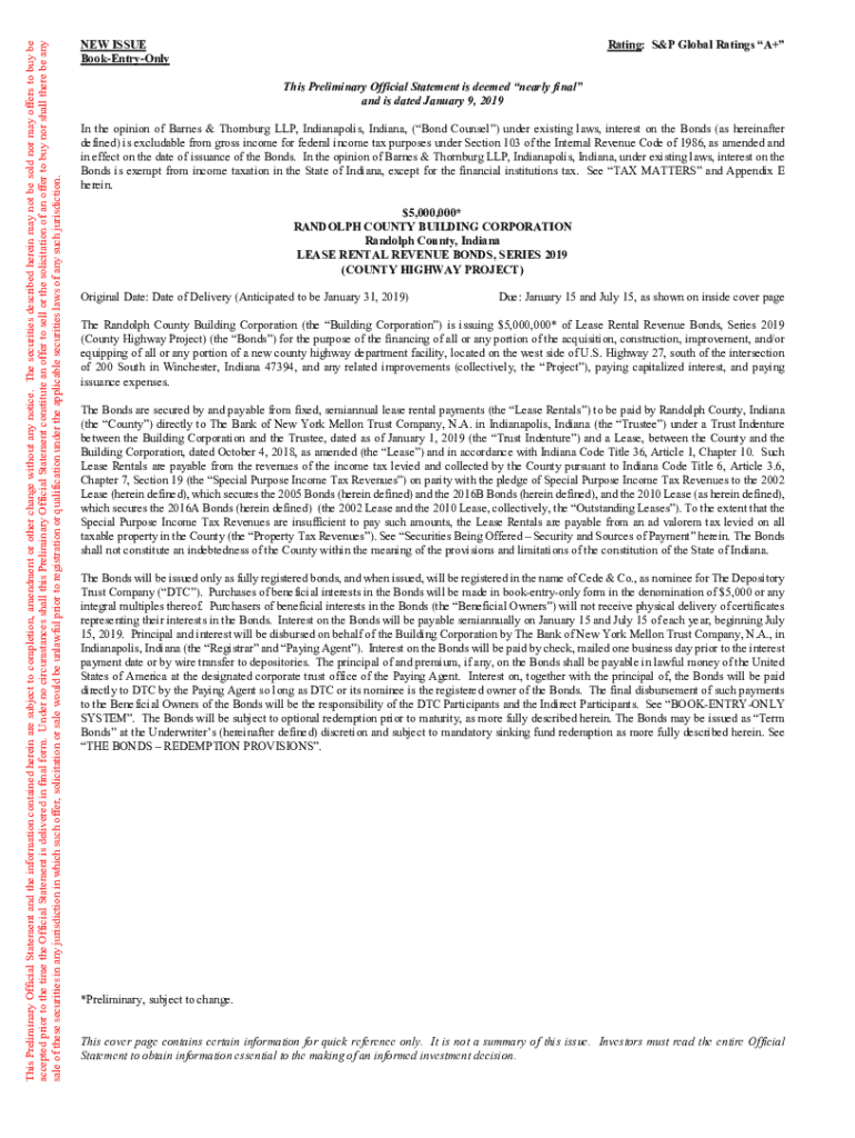 This Preliminary Official Statement and the information contained herein are subject to completion, amendment or other change without any notice. The securities described herein may not be sold nor