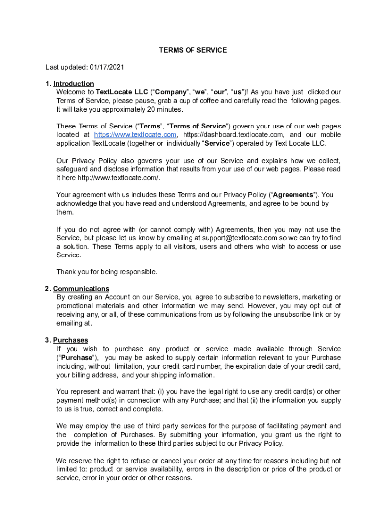 TERMS OF SERVICE Last updated: 01/17/2021 1. Introduction Welcome to Relocate LLC (Company, we, our, us)! As you have just clicked our Terms of Service, please pause, grab a cup of coffee and carefully