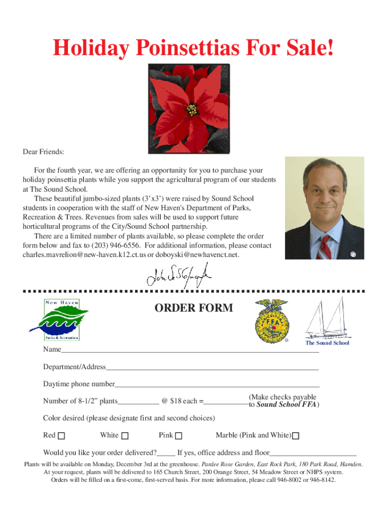 Holiday Poinsettias For Sale! Dear Friends: For the fourth year, we are offering an opportunity for you to purchase your holiday poinsettia plants while you support the agricultural program of our