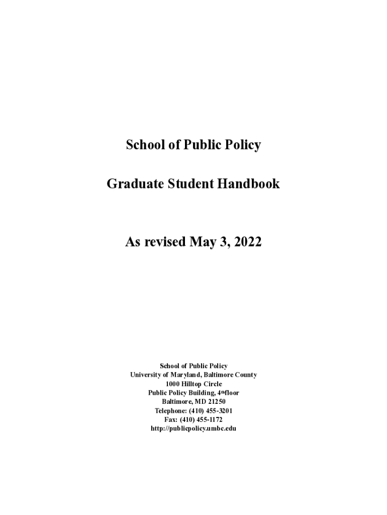 School of Public Policy Graduate Student Handbooks revised May 3, 2022School of Public Policy University of Maryland, Baltimore County 1000 Hilltop Circle Public Policy Building, 4thfloor Baltimore,