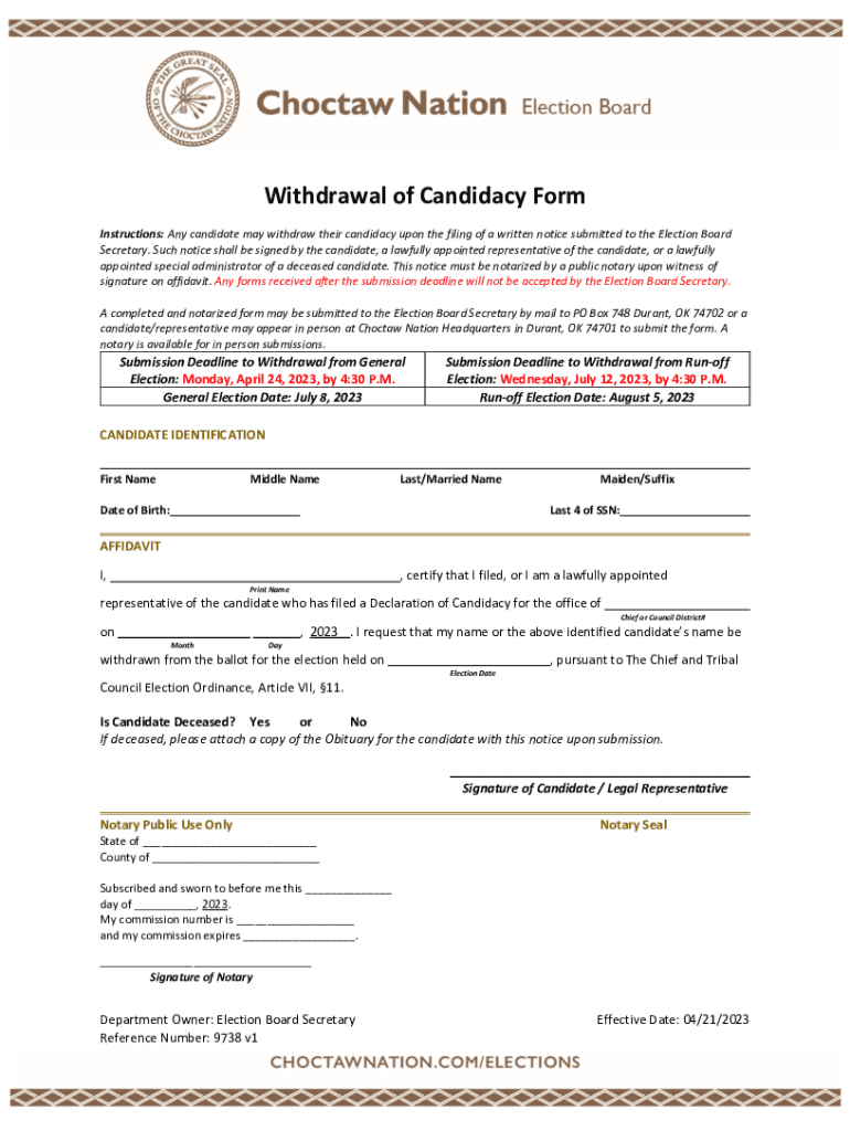 How to fill out withdrawal of candidacy form