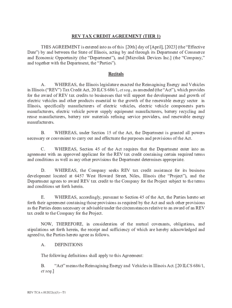 Get the free rev tax credit agreement (tier 1)
