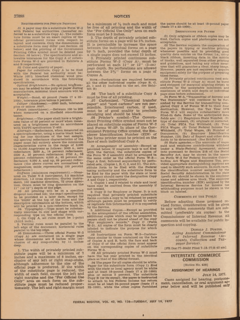 37088 R e q u ire m e n ts NOTICES for RP r iv a t e P r i n t i n g.01 A payer may file a substitute Form W2 with Federal tax authorities (hereafter ref erred to as a substitute Copy A). The substi