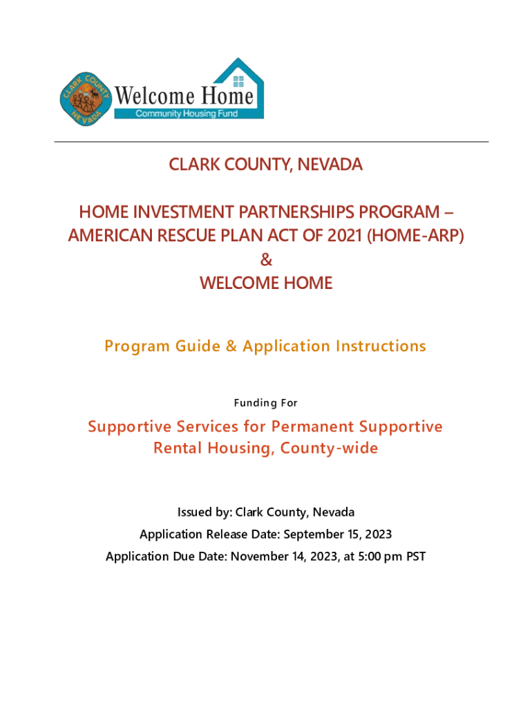 CLARK COUNTY, NEVADA HOME INVESTMENT PARTNERSHIPS PROGRAM AMERICAN RESCUE PLAN ACT OF 2021 (HOME ARP) & WELCOME HOME Program Guide & Application Instructions Funding Supportive Services for Permanent