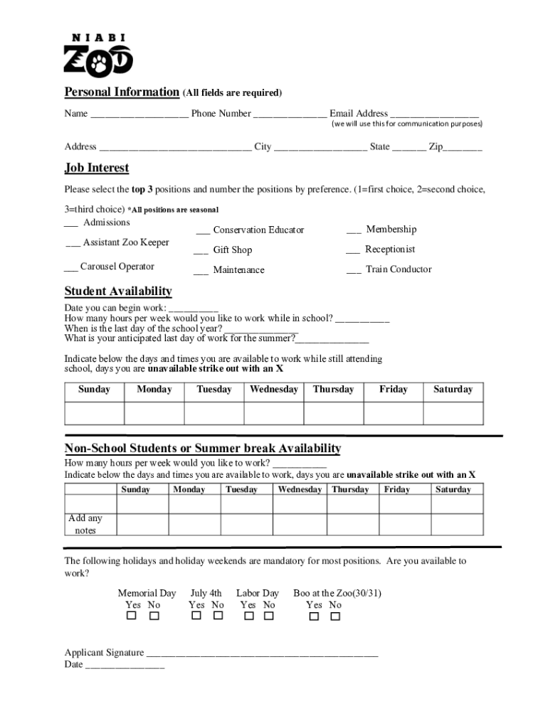 Get the free Job Interest Student Availability Non-School ...