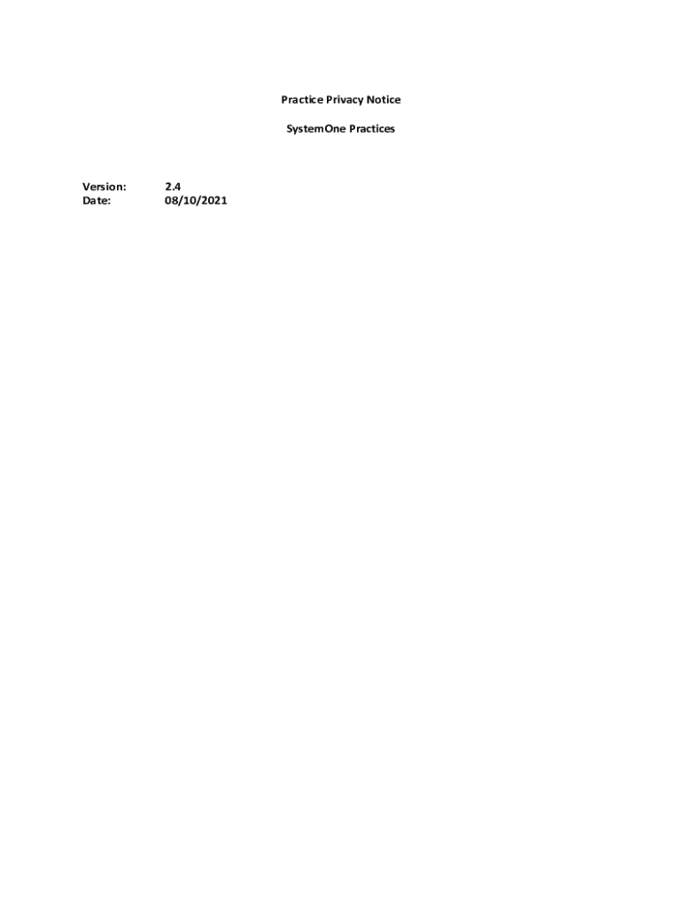Get the free Practice Privacy Notice SystemOne Practices Version: 2.4 Date