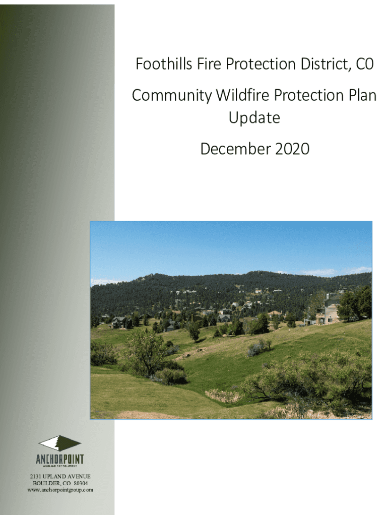 Foothills Fire Protection District, C0 Community Wildfire Protection Plan Update December 20202131 UPLAND AVENUE BOULDER, CO 80304 www.anchorpointgroup.comTABLE OF CONTENTS Mutual agreement page ...................................................................................................................