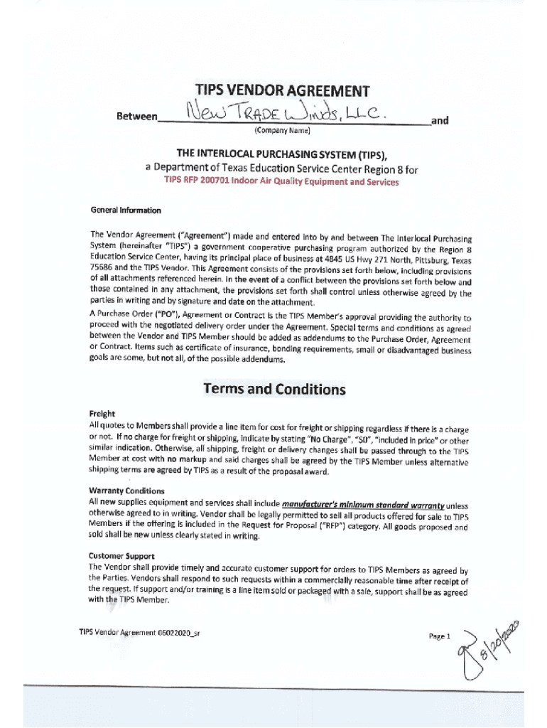 Meredith Barton Chief Operating Officerr9/24/2020NOTICE TO MEMBERS REGARDING ATTRIBUTE RESPONSES TIPS VENDORS RESPOND TO ATTRIBUTE QUESTIONS AS PART OF TIPS COMPETITIVE SOLICITATION PROCESS. THE VENDORS