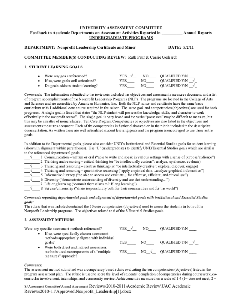 UNIVERSITY ASSESSMENT COMMITTEE Feedback to Academic Departments on Assessment Activities Reported in ___ Annual Reports UNDERGRADUATE PROGRAMS DEPARTMENT: Nonprofit Leadership Certificate and Minority: