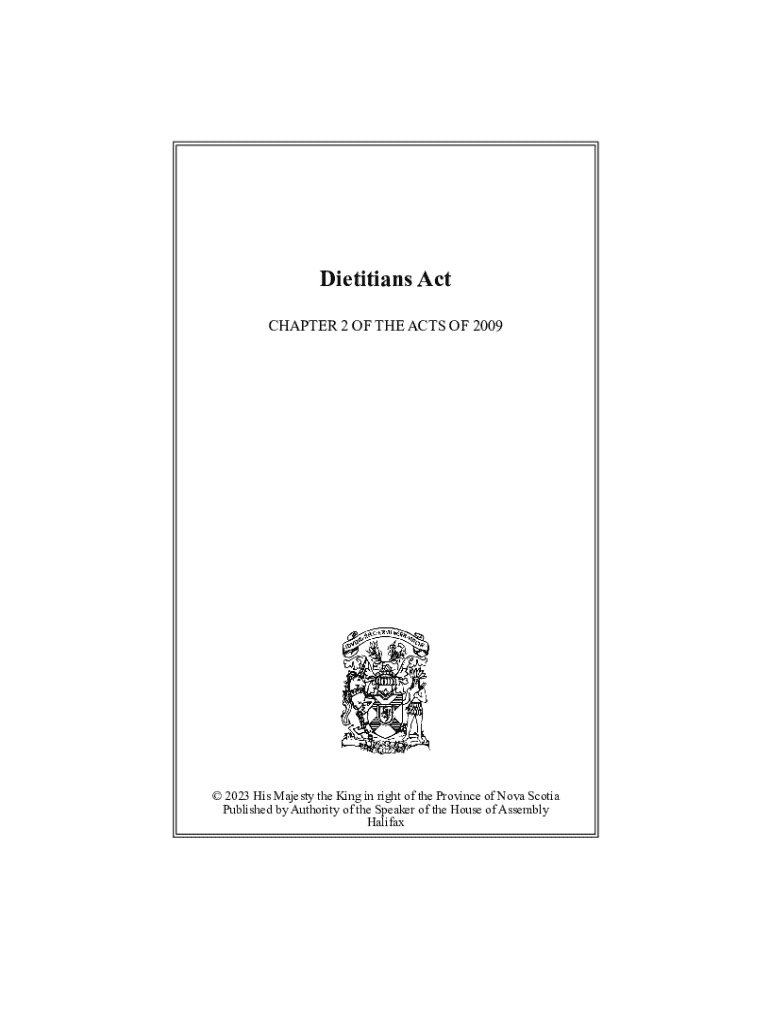 Dietitians Act CHAPTER 2 OF THE ACTS OF 2009 2023 His Majesty the King in right of the Province of Nova Scotia Published by Authority of the Speaker of the House of Assembly HalifaxThis page is intentionally