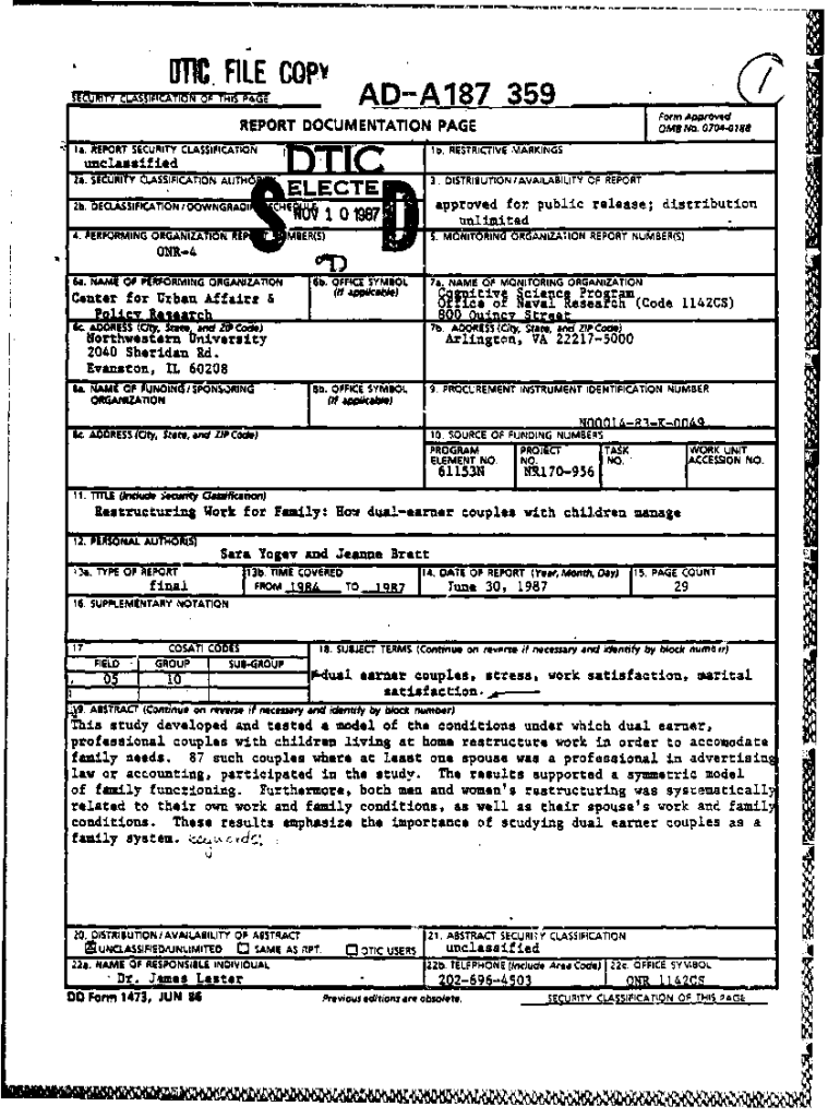 \”(TIC.FILE COPY AADA187SECURITY CLASSIFIED OF TH359Form ApprovedREPORT DOCUMENTATION Palomino. 07040188IS. REPORT SECURITYCLSIIAINb.RTITVEMKNGIlRunclassified