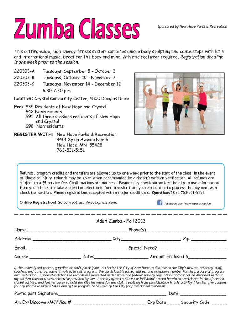 Zumba ClassesSponsored by New Hope Parks & Recreations cutting edge, high energy fitness system combines unique body sculpting and dance steps with Latin and international music. Great for the body