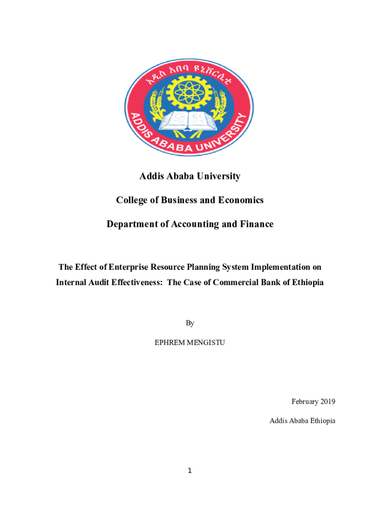 Addis Ababa University College of Business and Economics Department of Accounting and Finance Effect of Enterprise Resource Planning System Implementation on Internal Audit Effectiveness: The Case