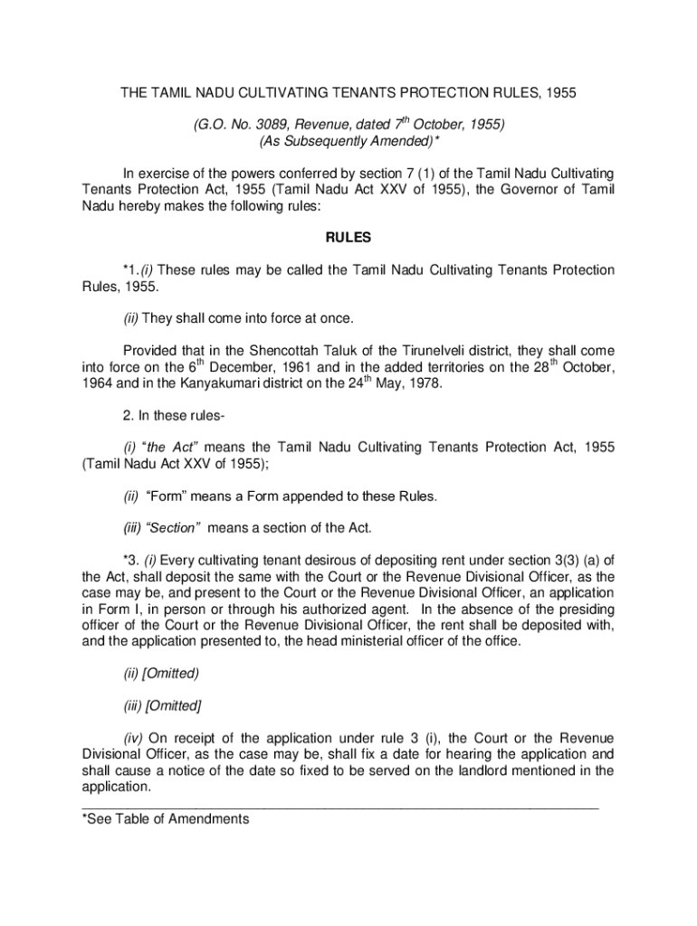 THE TAMIL NADU CULTIVATING TENANTS PROTECTION RULES, 1955 (G.O. No. 3089, Revenue, dated 7th October 1955) (As Subsequently Amended)* In exercise of the powers conferred by section 7 (1) of the Tamil
