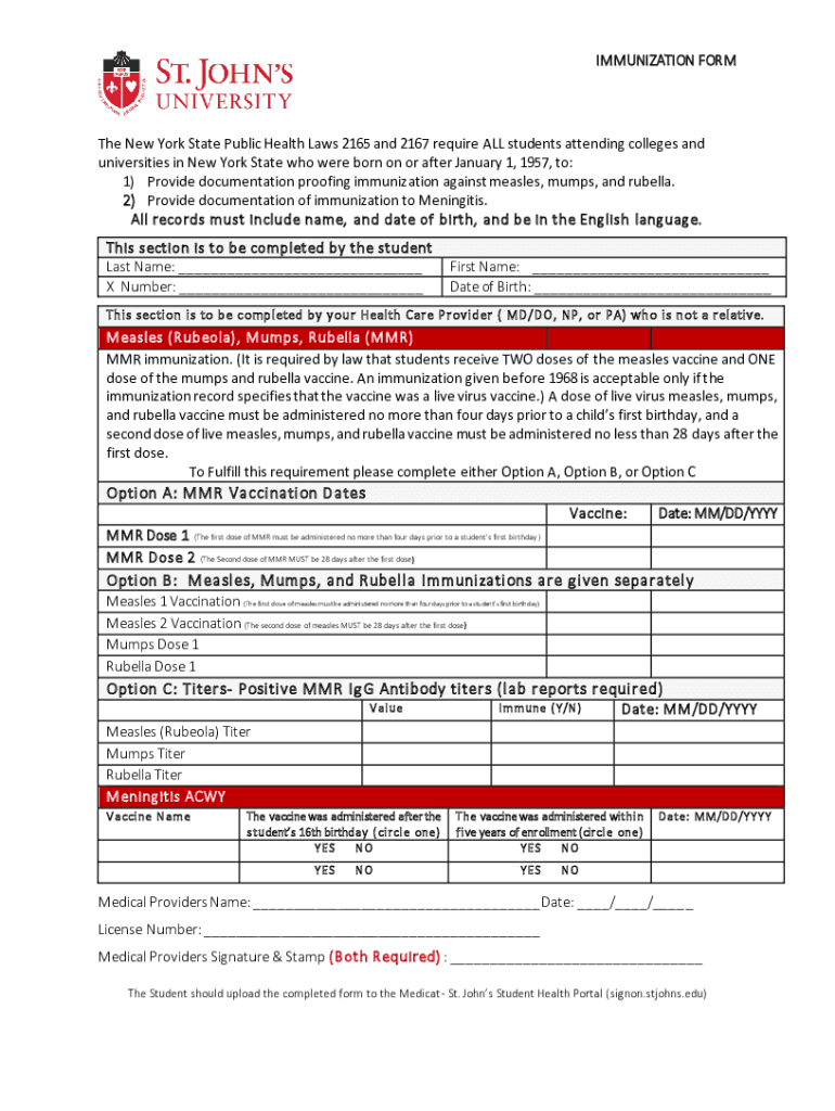 Get the free New York State Policy on Immunization and Health Record ...