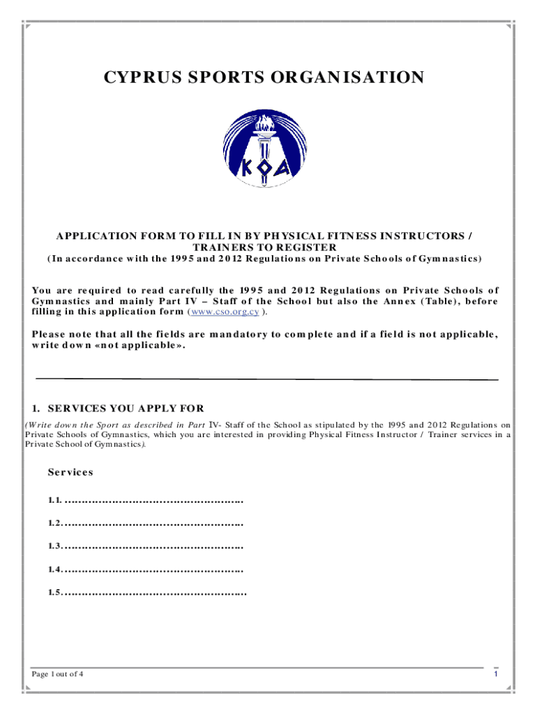 CYPRUS SPORTS ORGANISATIONAPPLICATION FORM TO FILL IN BY PHYSICAL FITNESS INSTRUCTORS /