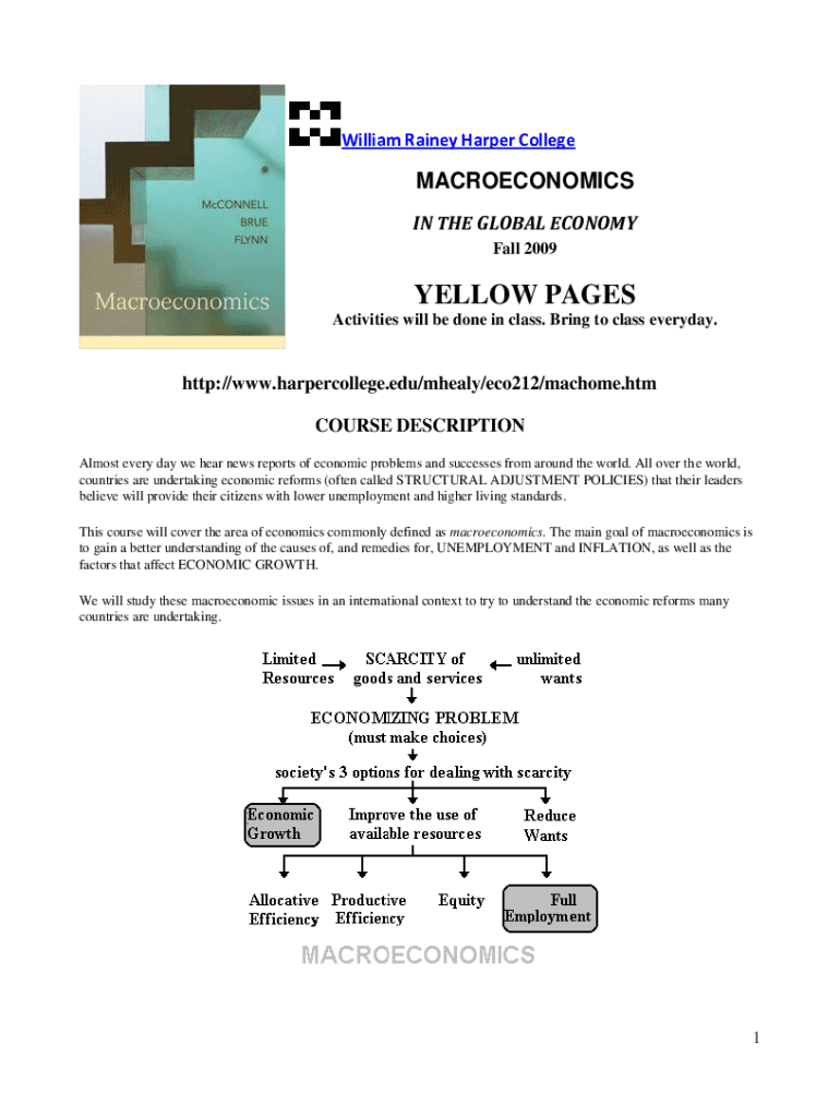 William Rainy Harper CollegeMACROECONOMICS IN THE GLOBAL ECONOMY Fall 2009YELLOW PAGES Activities will be done in class. Bring to class every day.http://www.harpercollege.edu/mhealy/eco212/machome.htm