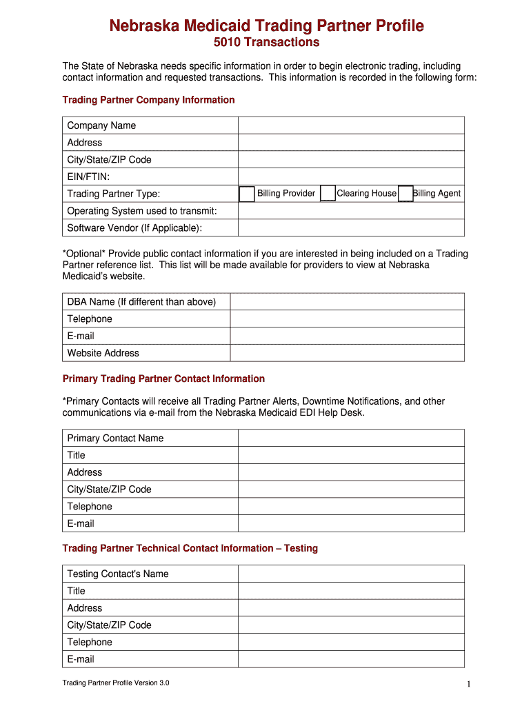 Get the free Nebraska Medicaid Trading Partner Profile - dhhs ne