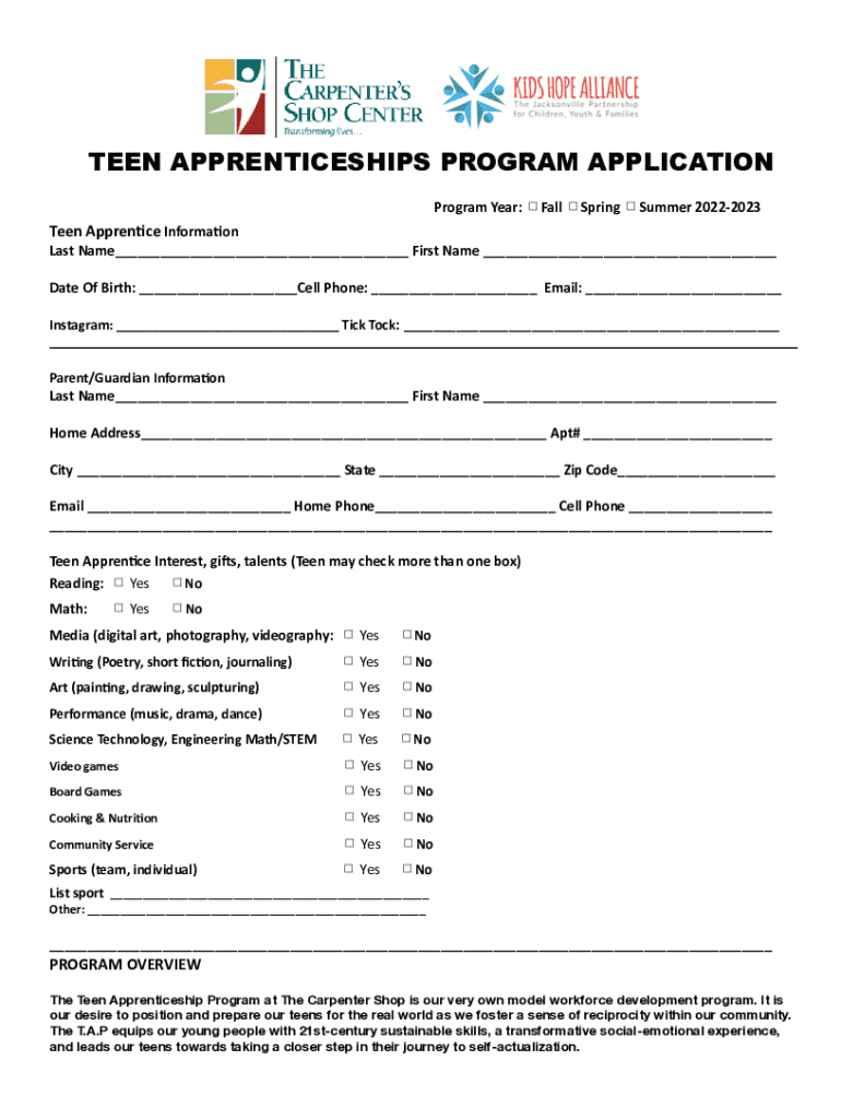 Fill out your teen apprenticeships program application online with pdfFiller!