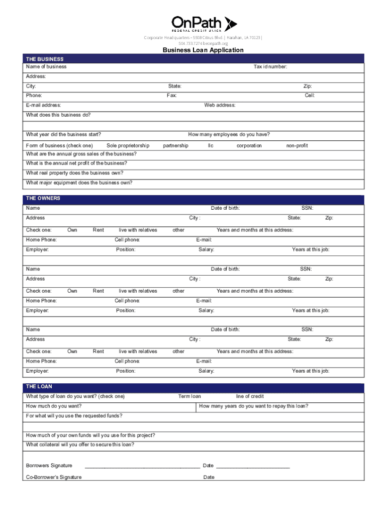 Corporate Headquarters 5508 Citrus Blvd. | Caravan, LA 70123 | 504.733.7274 beneath. Business Loan Application BUSINESS Name of businessman ID number:Address: City:State:Zip:Phone:Fax:Cell:Email address:Web