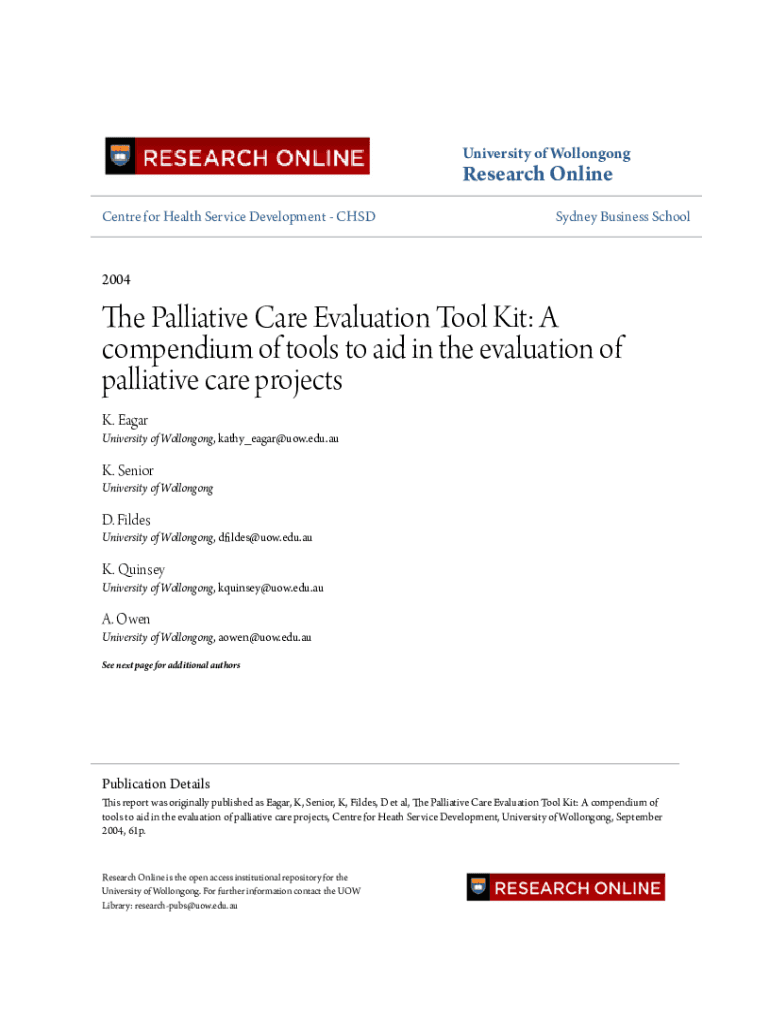 Get the free The Palliative Care Evaluation Tool Kit - Research Online