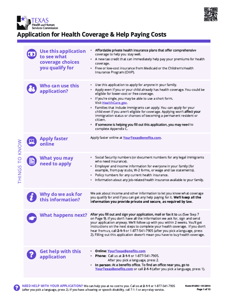 Application for Health Coverage & Help To pay Costs