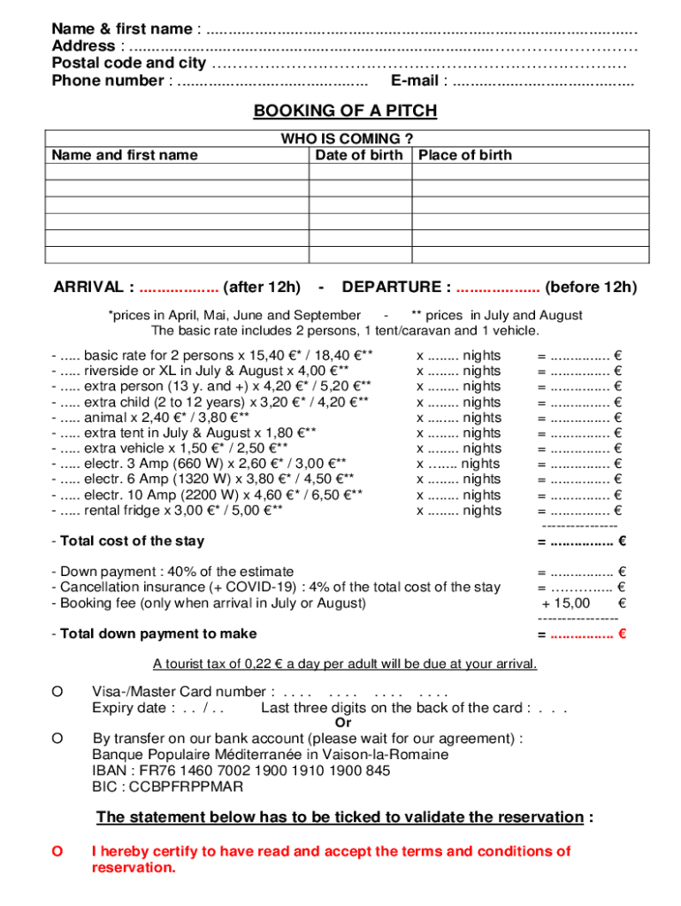 Name & first name : ................................................................................................. Address : ..................................................................................