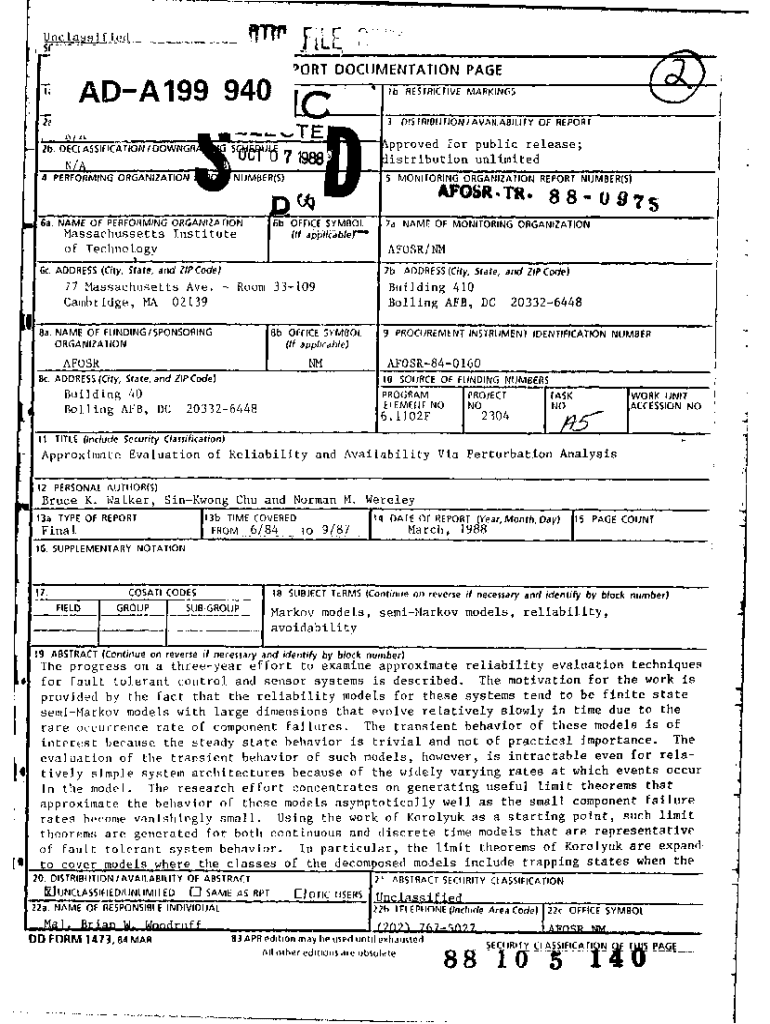 Get the free Approximate Evaluation of Reliability and Availability Via Perturbation Analysis. Th...