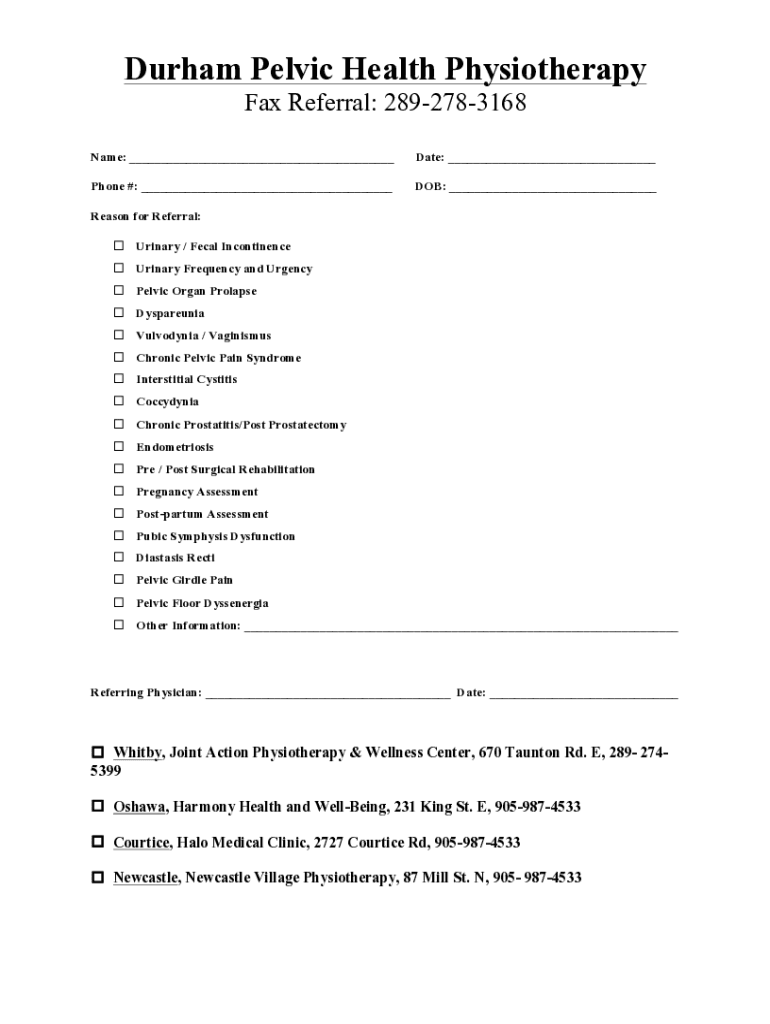 Fill out your durham pelvic physioformrapy health online with pdfFiller!