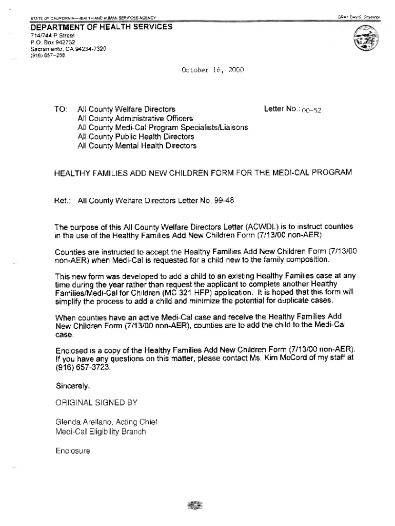 Get the free department of health services 714/744 p street o, box 942732 ...