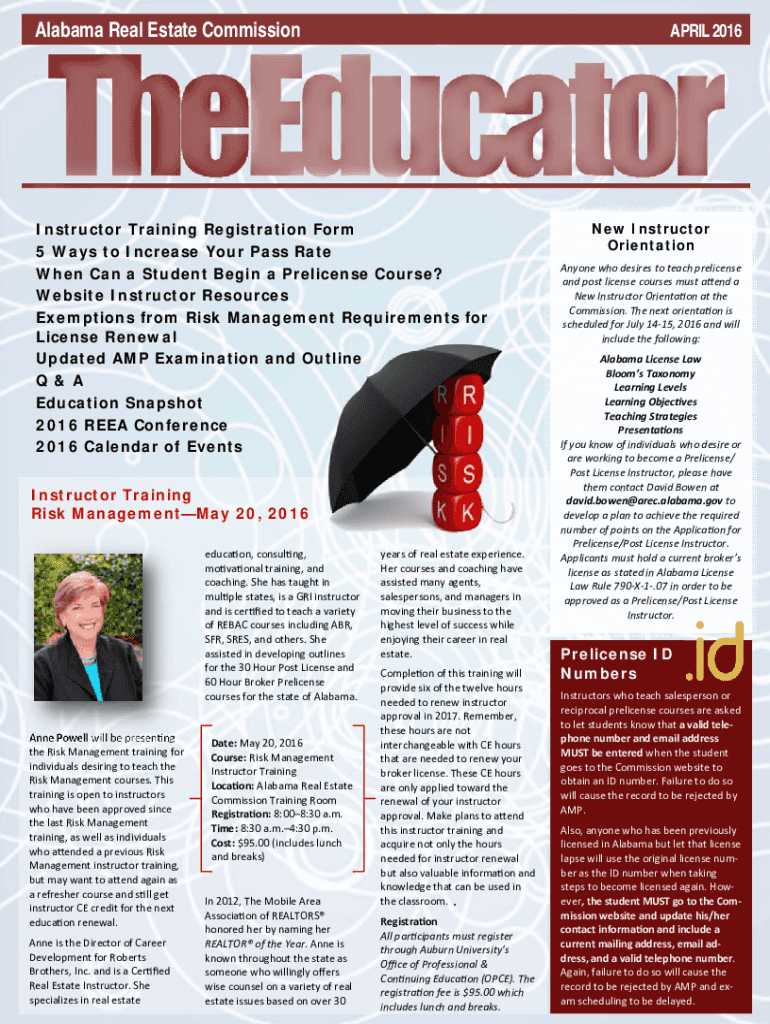 Alabama Real Estate Commissionaire 2016Instructor Training Registration Form
