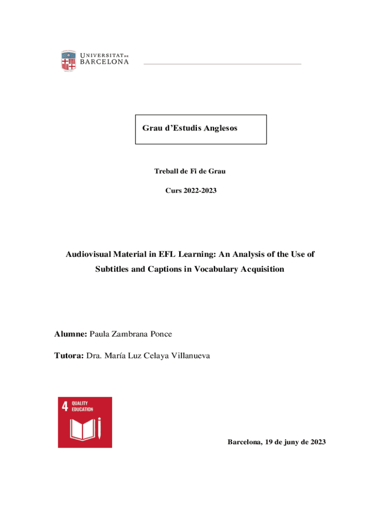 Subtitles and Captions in Vocabulary AcquisitionAlumne: Paula Zambrano Ponce