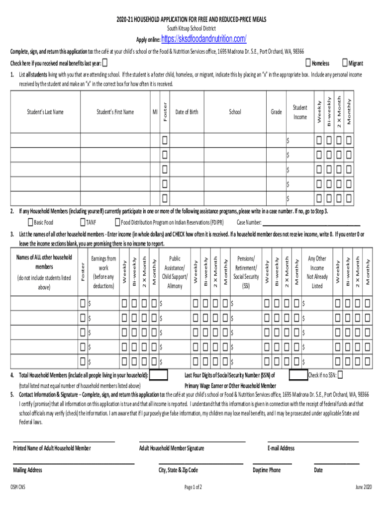 202021 HOUSEHOLD APPLICATION FOR FREE AND REDUCEDPRICE MEALS South Kit sap School District Apply online: https://sksdfoodandnutrition.com/ Complete, sign, and return this application to: the CAF at