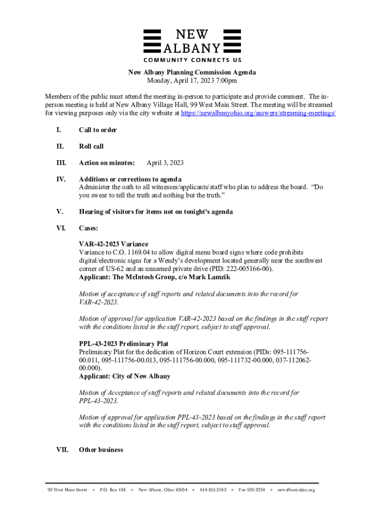 Get the free New Albany Planning Commission Agenda