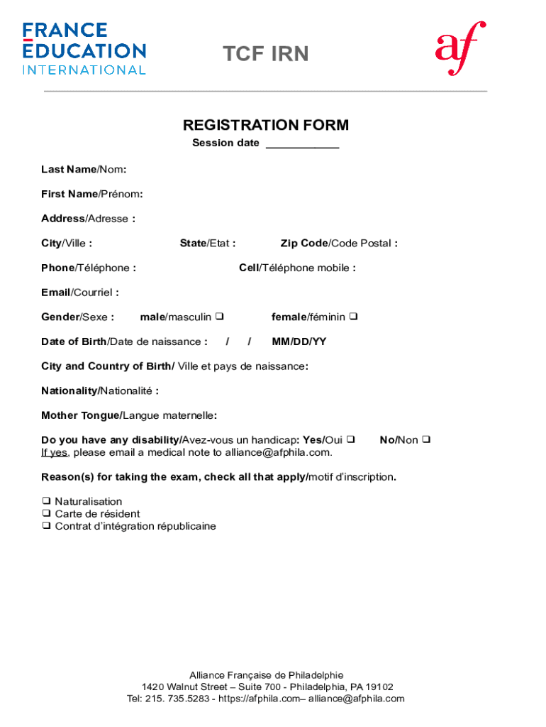 Get the free REGISTRATION FORM TCF IRN