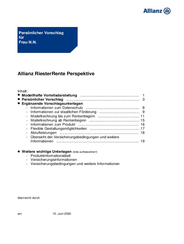 Frau N.N. Allianz RiesterRente PerspektiveInhalt: