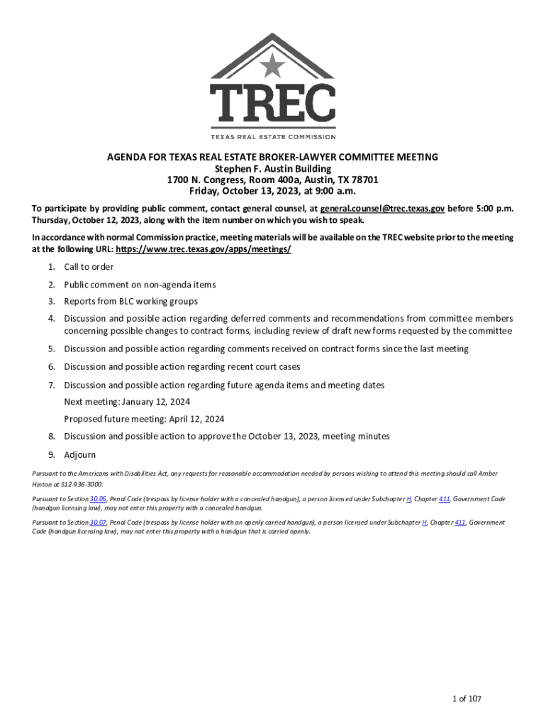 AGENDAFORTEXASREALESTATEBROKERLAWYERCOMMITTEEMEETING