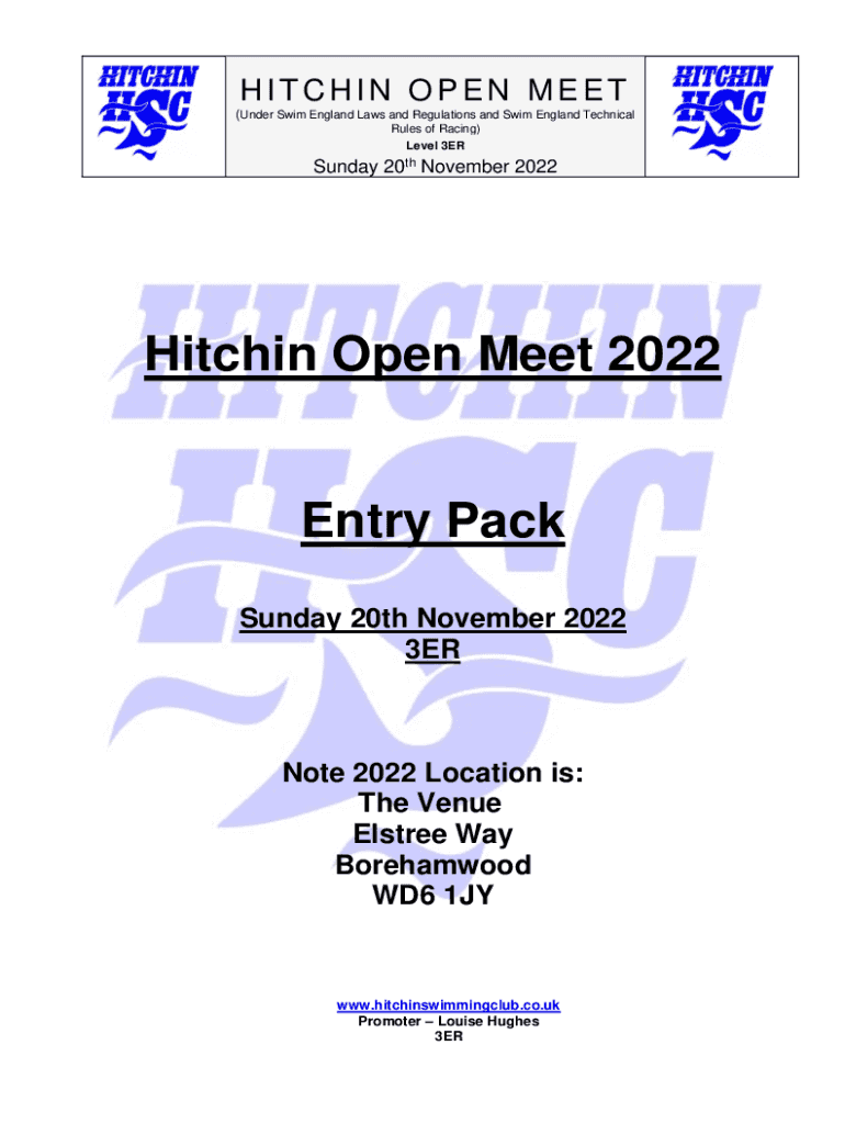 HITCHING OPEN MEET (Under Swim England Laws and Regulations and Swim England Technical Rules of Racing) Level 3ER Sunday 20 November 2022Hitchin Open Meet 2022Entry Pack Sunday 20th November 2022
