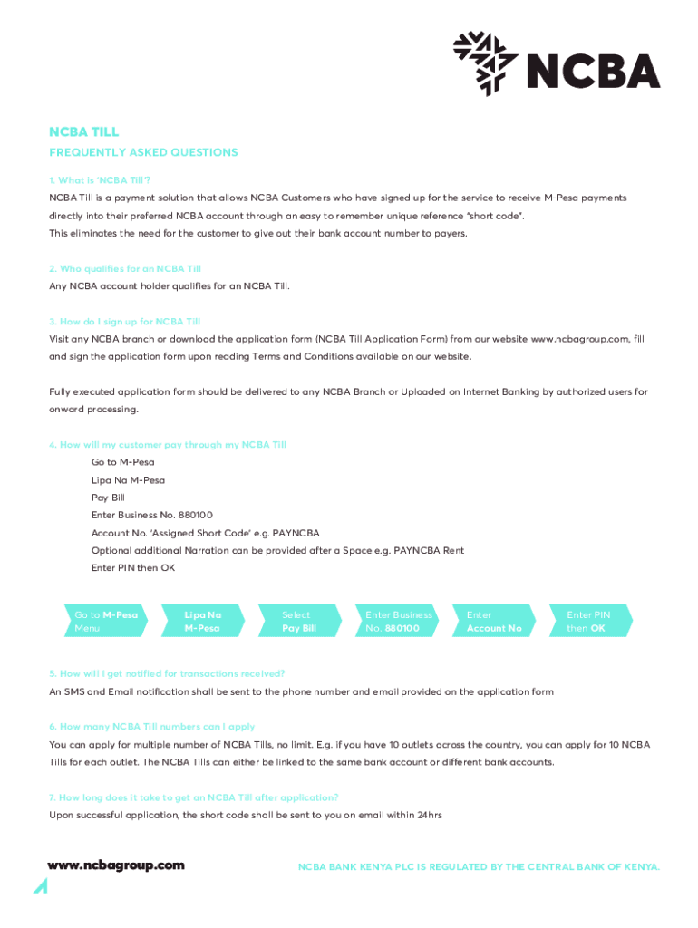Any individual or business who has questions or queries related to NCBA Till services may need to fill out the NCBA Till FAQ form.