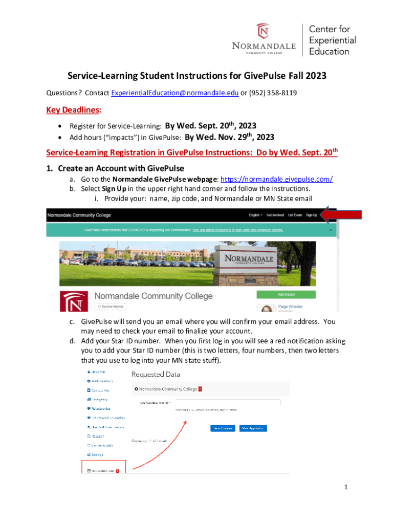 Get the free Service-Learning Student Instructions for GivePulse Fall ...