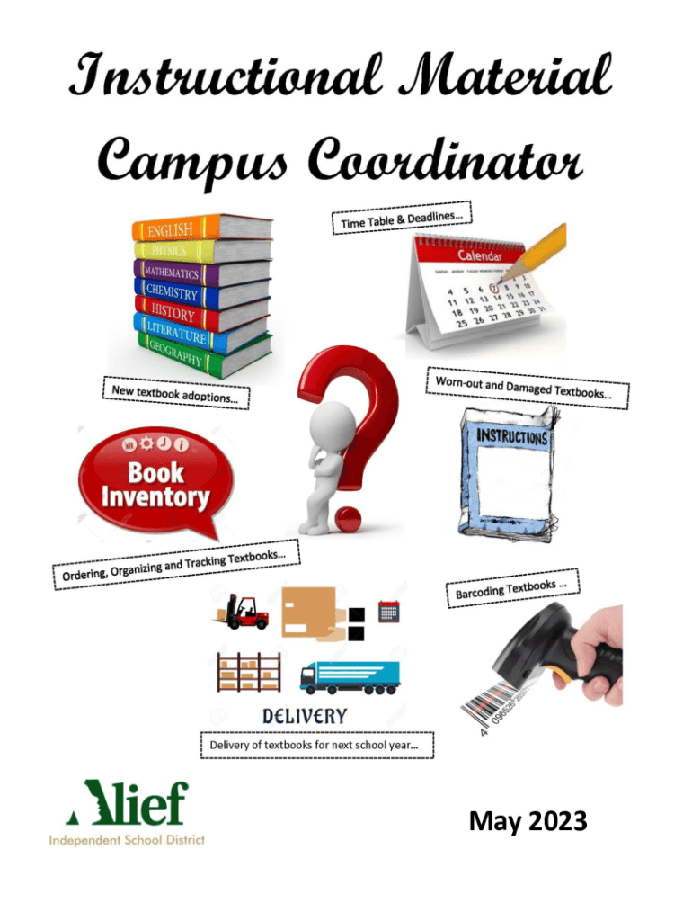 May 2023Access Textbook/Instructional Resource Link on Central Distributions Web Pre-instructional Materials/Textbooks Activity Calendar 2023Instructional Materials SchematicTextbook To Do Checklist