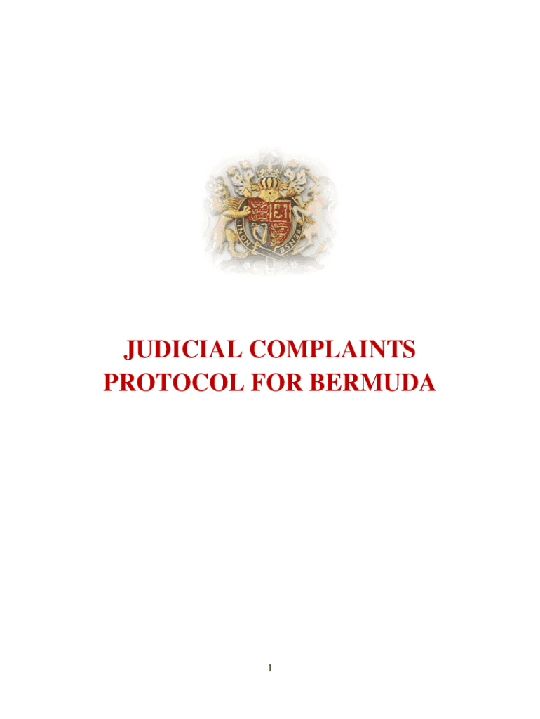 JUDICIAL COMPLAINTS PROTOCOL FOR BERMUDA1Table of Contents PART I CONVENING NOTE INTRODUCTORY....3 BACKGROUND TO Function.4 Appointments.4 Discipline and security of tenure.4 PART II JUDICIAL COMPLAINTS