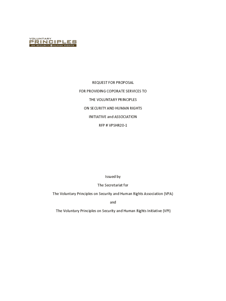 REQUEST FOR PROPOSAL FOR PROVIDING CORPORATE SERVICES TO THE VOLUNTARY PRINCIPLES ON SECURITY AND HUMAN RIGHTS INITIATIVE and ASSOCIATION RFP # VPSHR201Issued by The Secretariat for The Voluntary