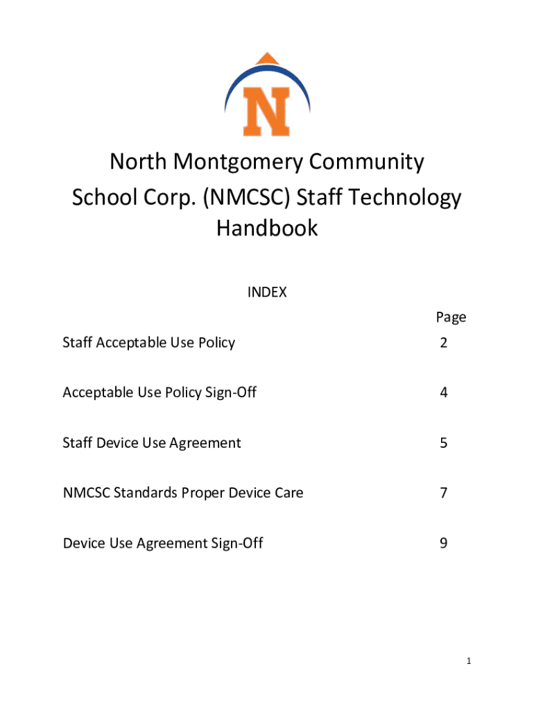 North Montgomery Community School Corp. (NM CSC) Staff Technology Handbook INDEX Page Staff Acceptable Use Policy2Acceptable Use Policy SignOff4Staff Device Use Agreement5NMCSC Standards Proper Device