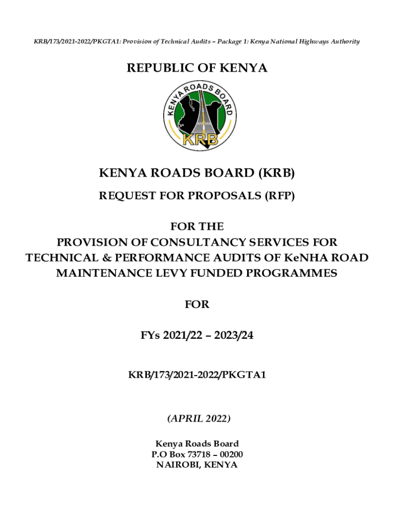 Get the free KRB/173/2021-2022/PKGTA1: Provision of Technical Audits Package 1: Kenya National Hi...